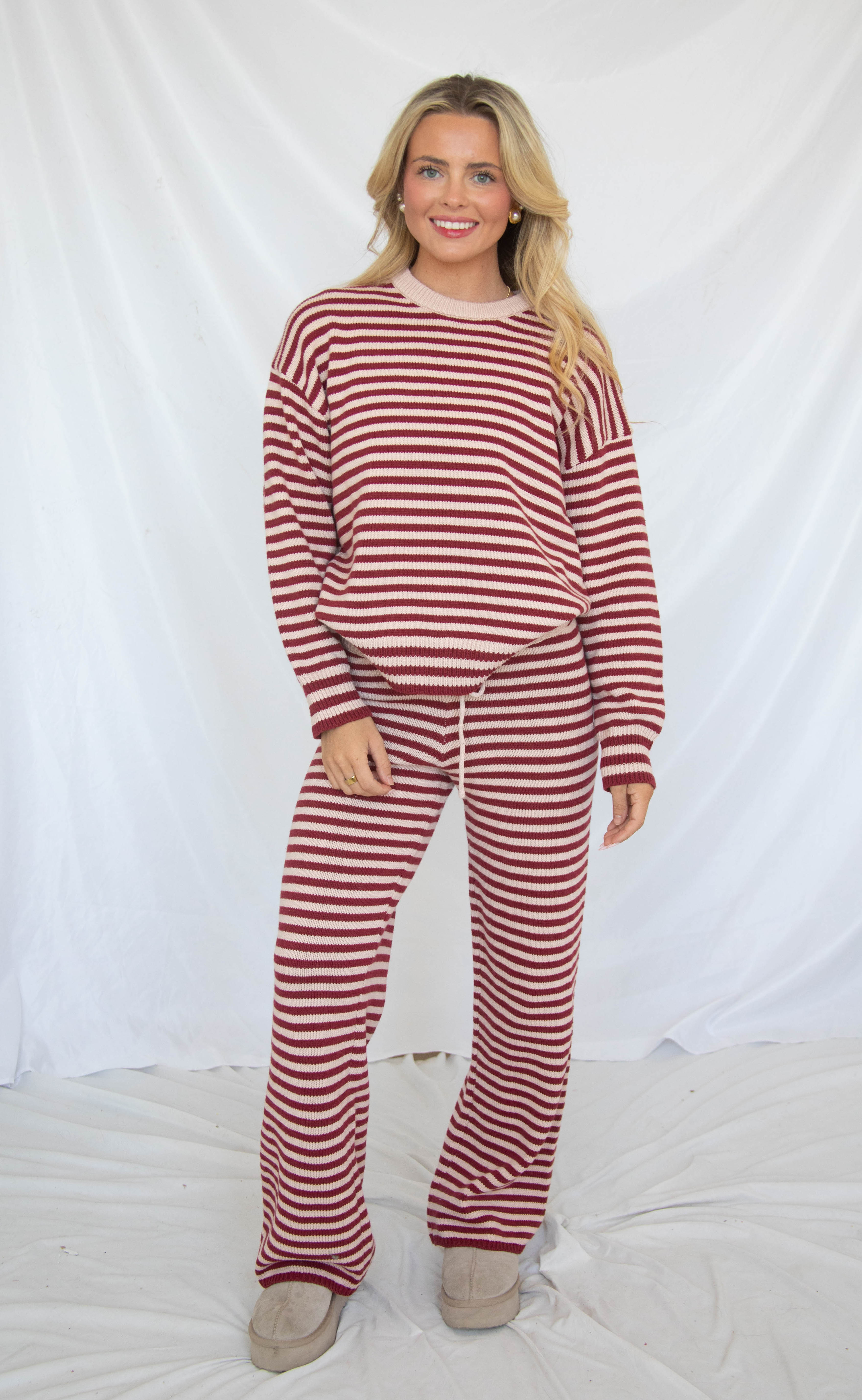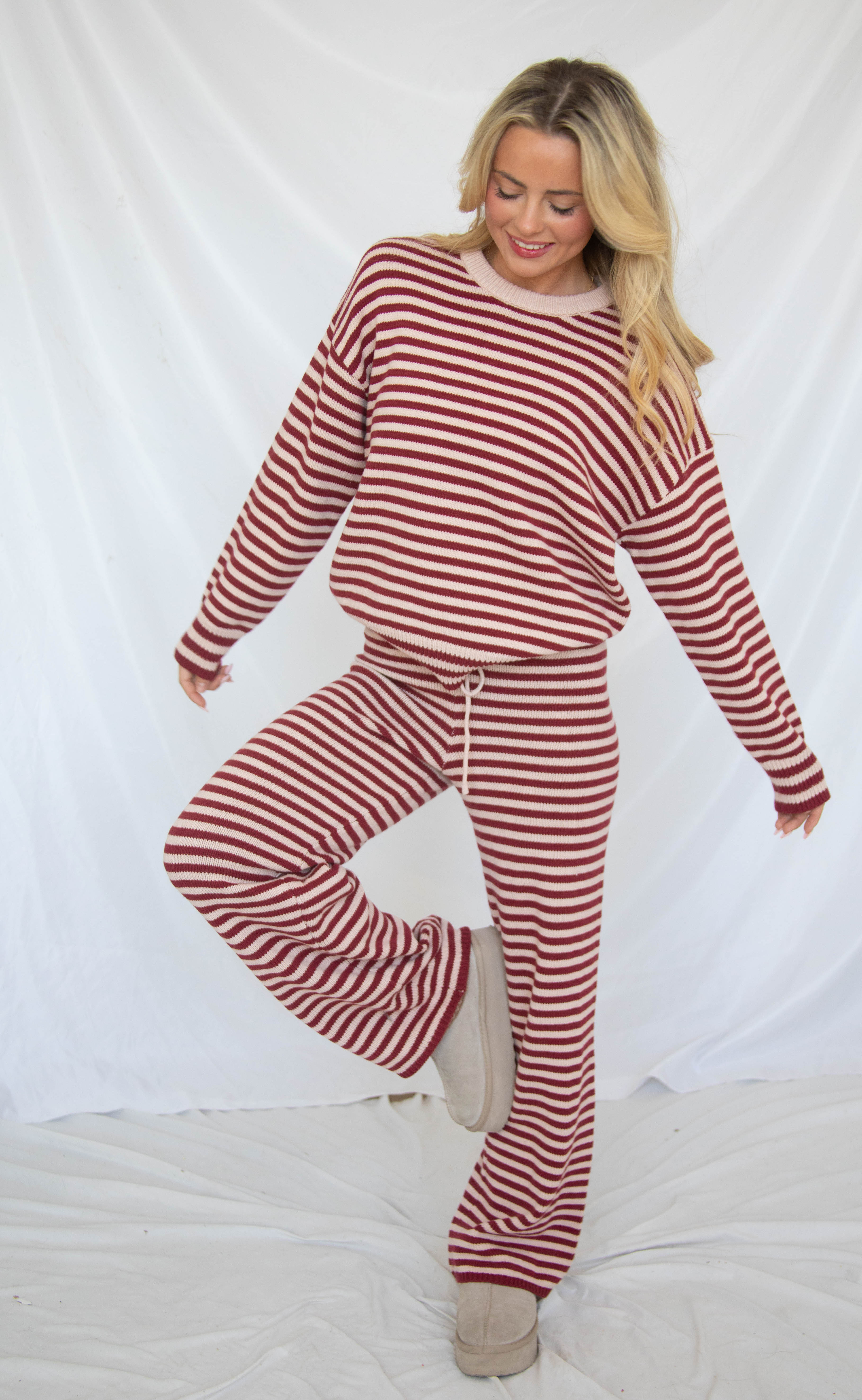 stay with me striped set - burgundy pink