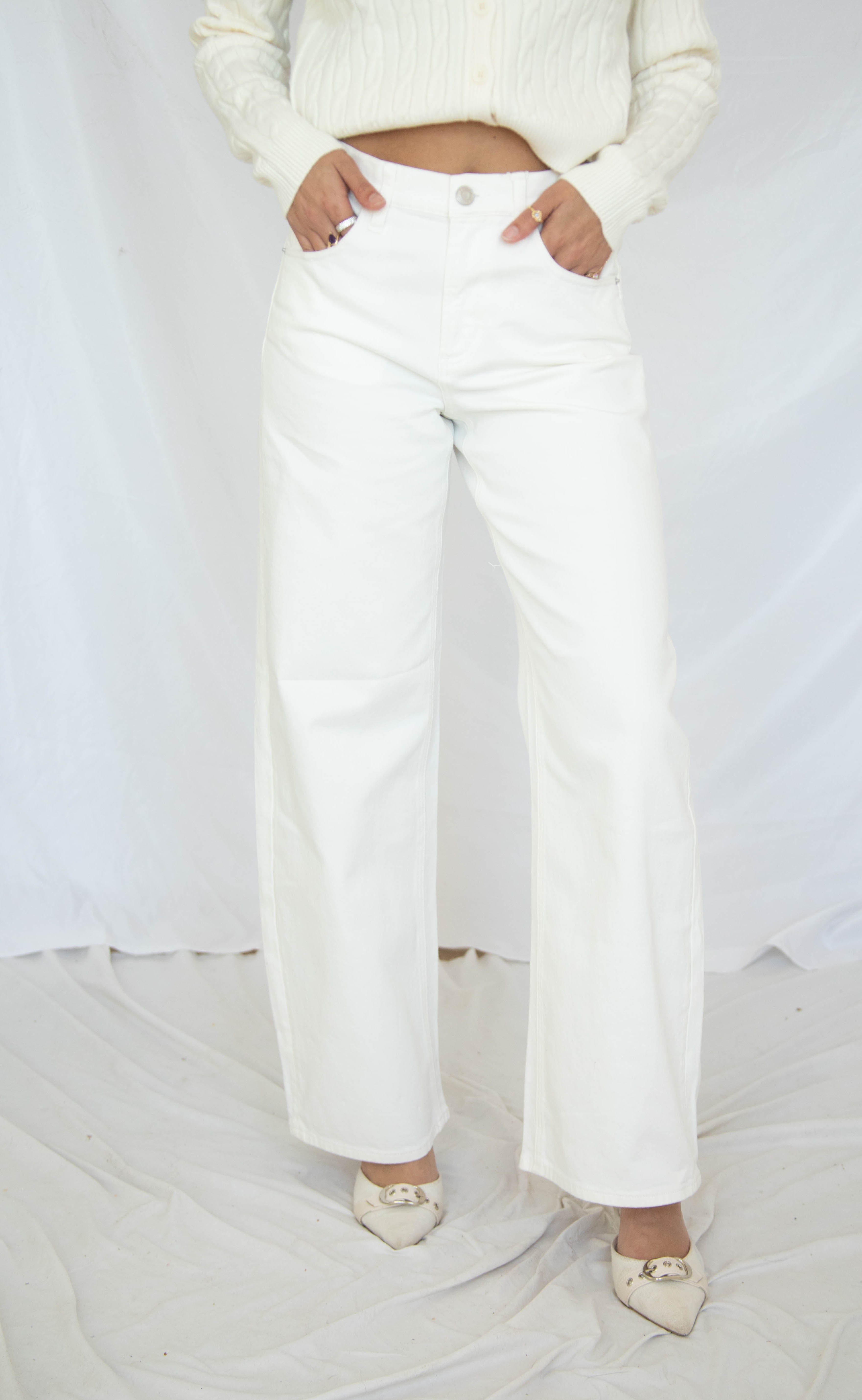 Crafted in soft denim with a wide-leg shape, this high-rise jean combines everyday comfort with classic style. The full-length silhouette elongates your frame, making it perfect for sneakers or heels.
