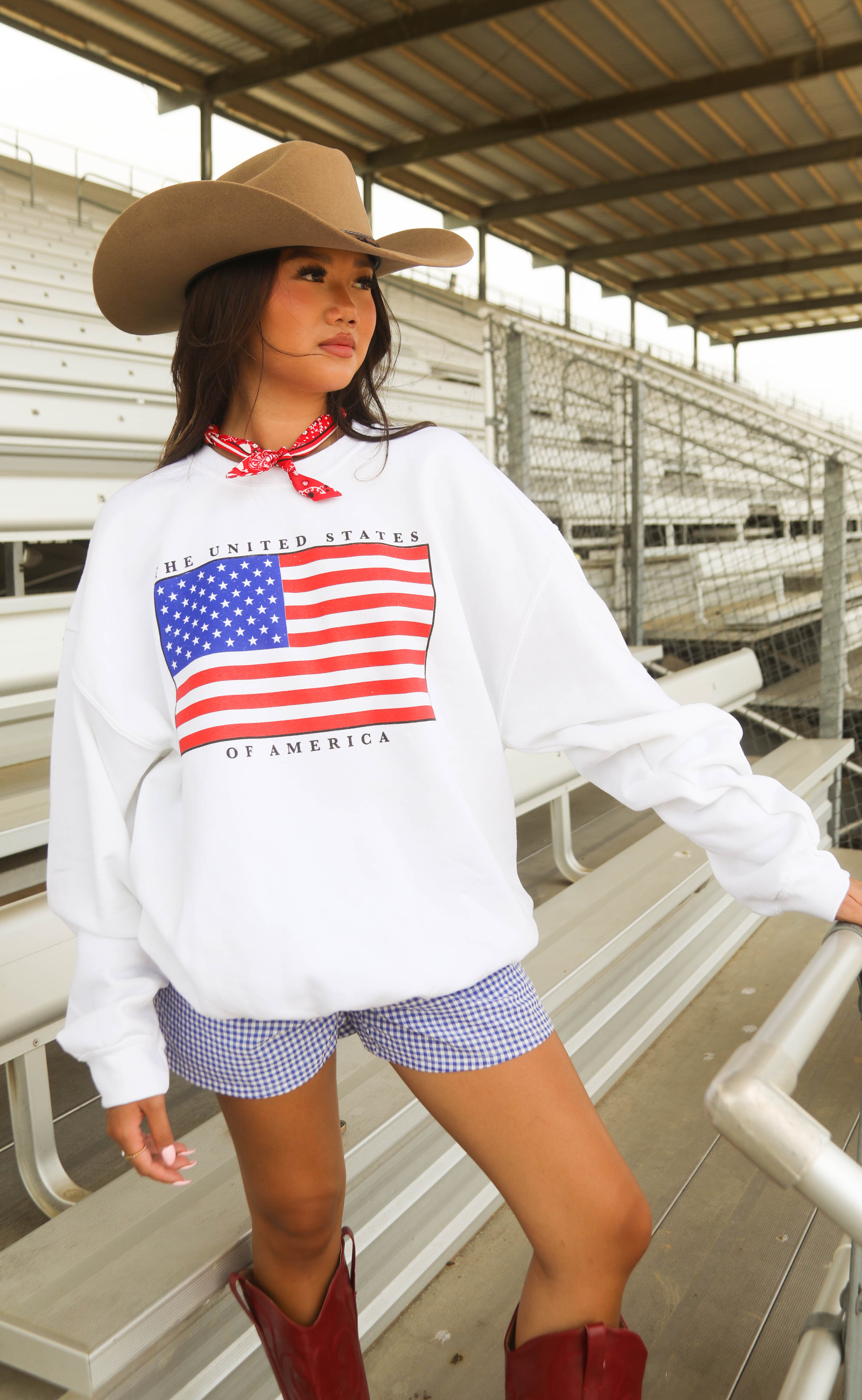 This instant classic, timeless, unisex design is printed on a crisp white sweatshirt that's begging to be worn during the Fourth of July fireworks. We love the bold oversized American flag and small printed "The United States of America."