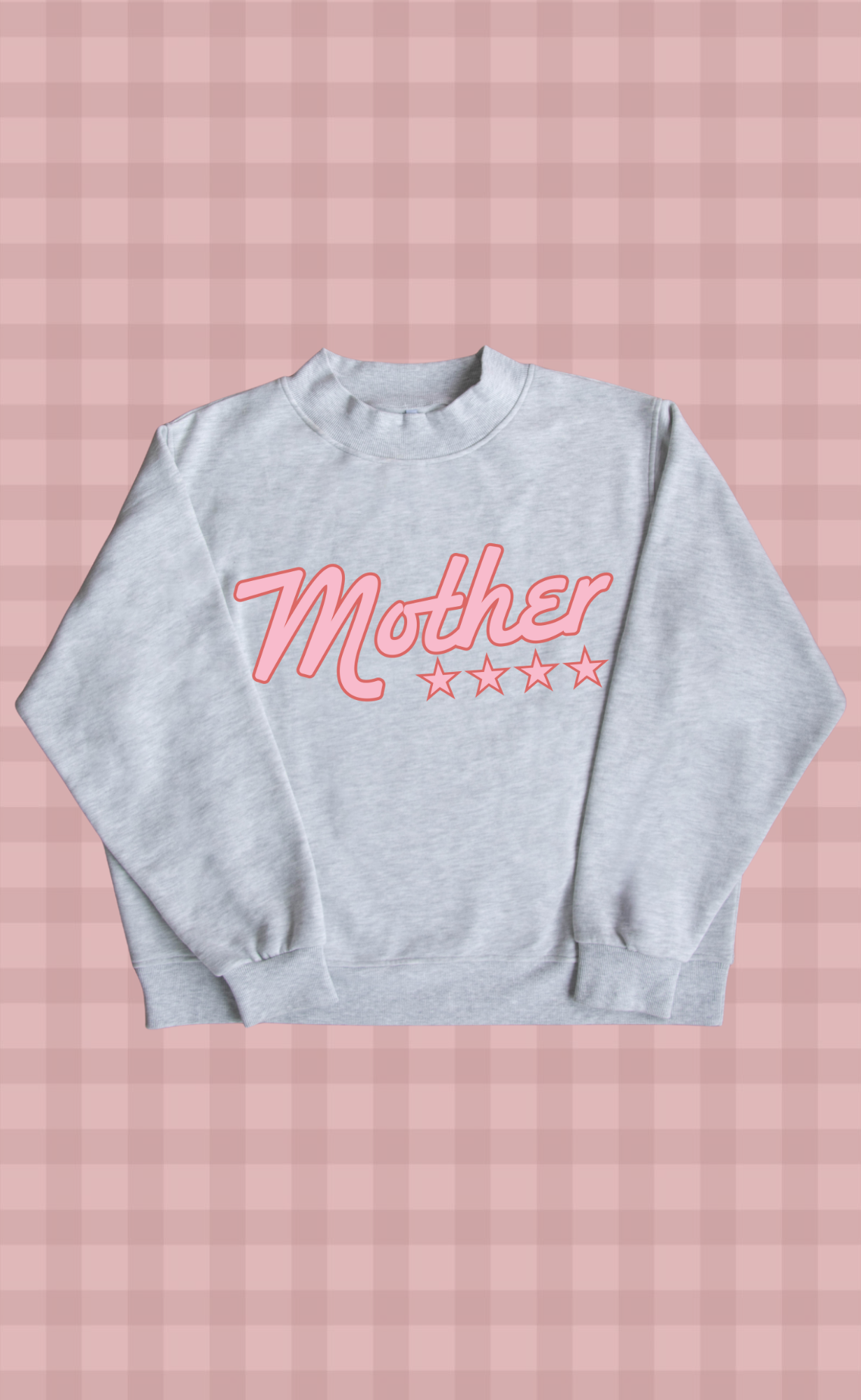 For moms, for soon-to-be moms, or for anyone who loves a cute graphic moment, this ash grey mock neck is your new go-to. The pink Mother script and star accents add the sweetest touch, while the cozy fabric and relaxed fit make it an instant classic. Perfect for gifting or treating yourself.