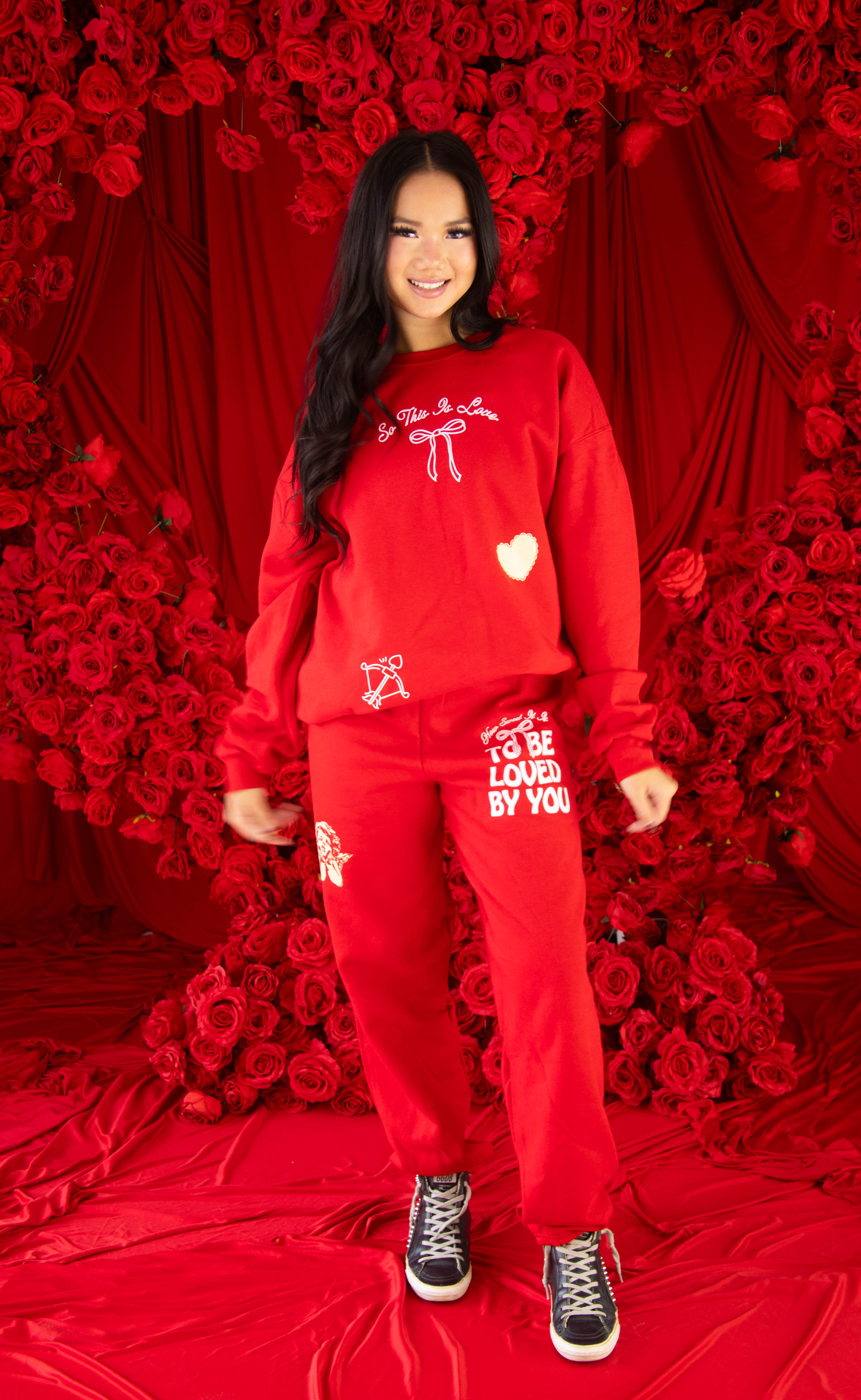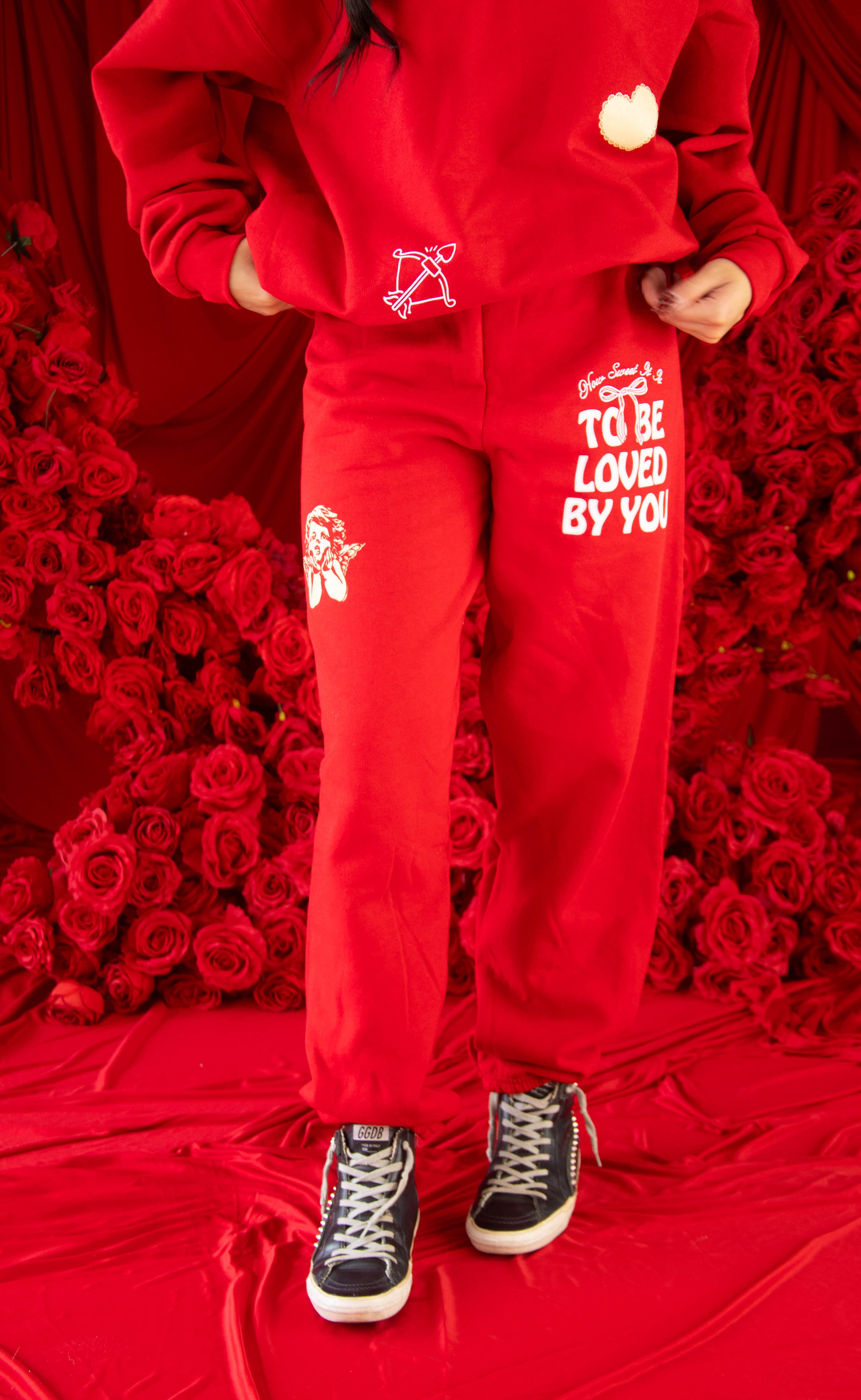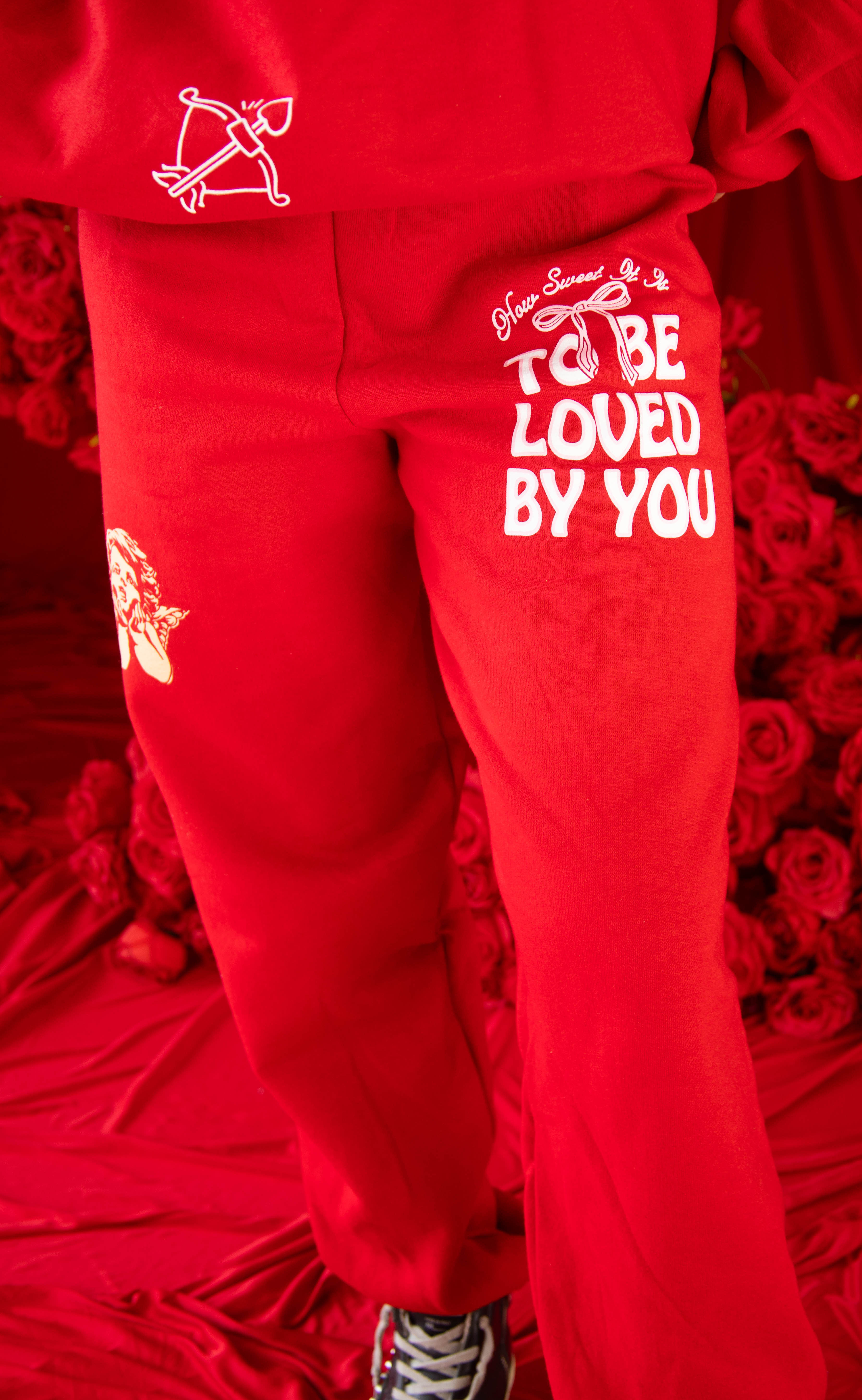 These matching jogger sweatpants complete the look with a sweet, playful touch. Designed in the same soft fabric you love, they feature a small angelic cherub cupid detail that adds just the right amount of charm. Easy pull-on style with a relaxed fit makes them perfect for lounging, layering, and gifting.