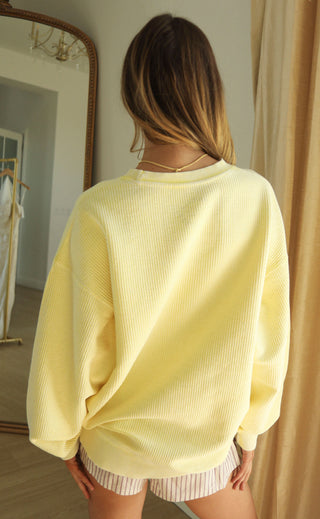 From the bachelorette party to the wedding weekend, this canary yellow corded sweatshirt will take the bride (or the wedding party) from point a to point b. This adorable corded sweatshirt features an oversized baby pink heart with "best weekend ever" scripted in the center.