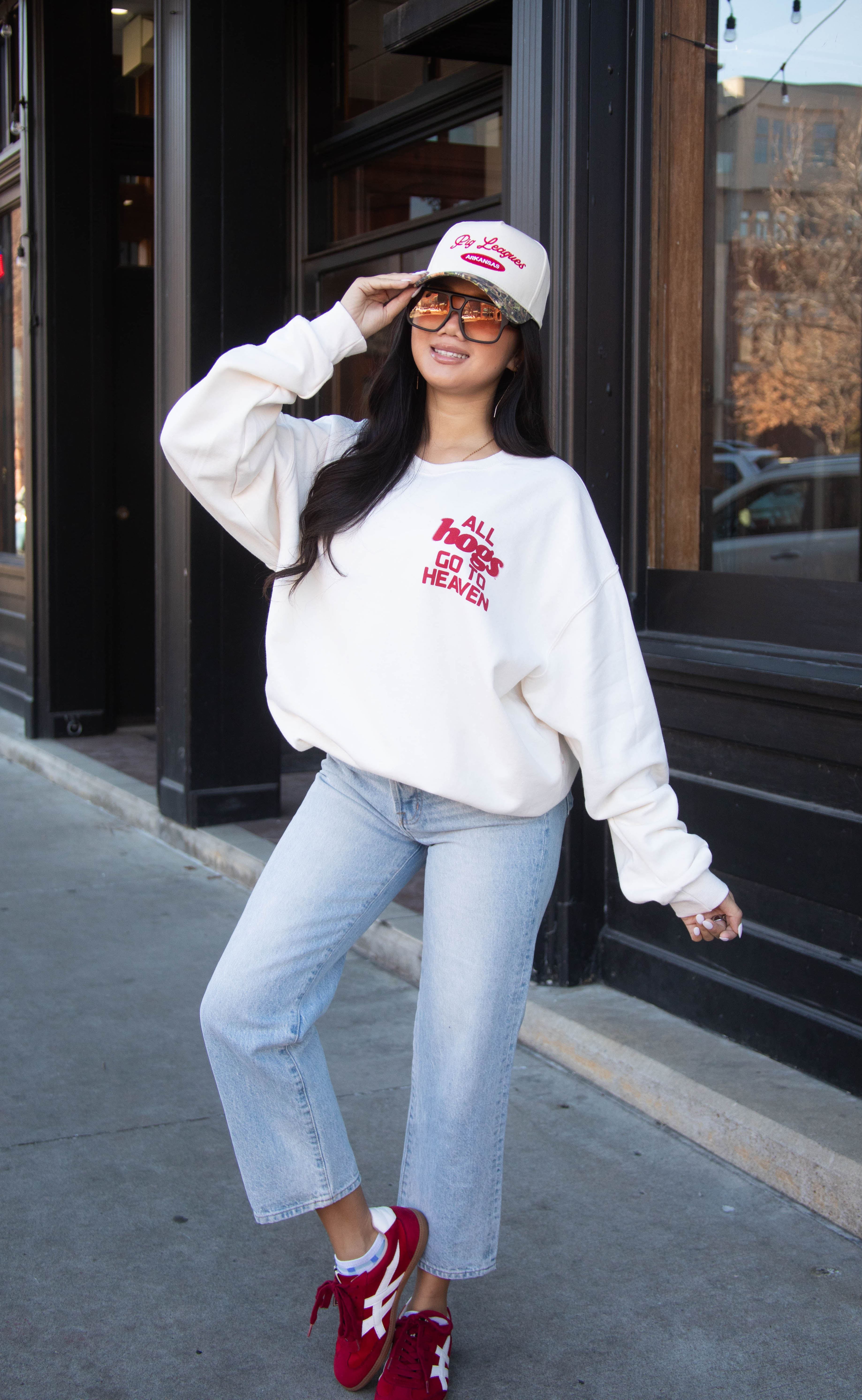 All Hogs go to heaven, right? This cream colored crewneck features a front and back design. We love the fun blurred effect.