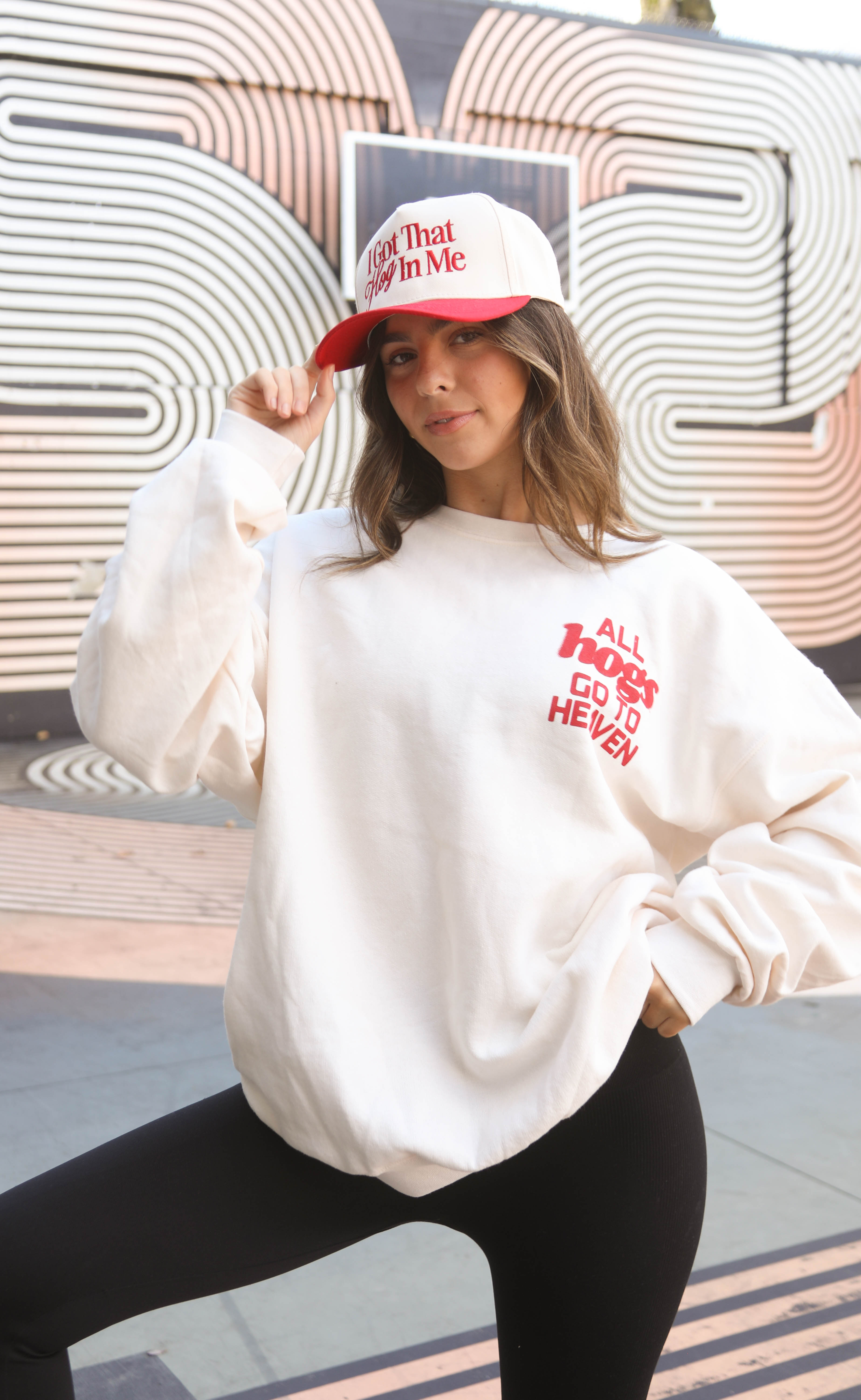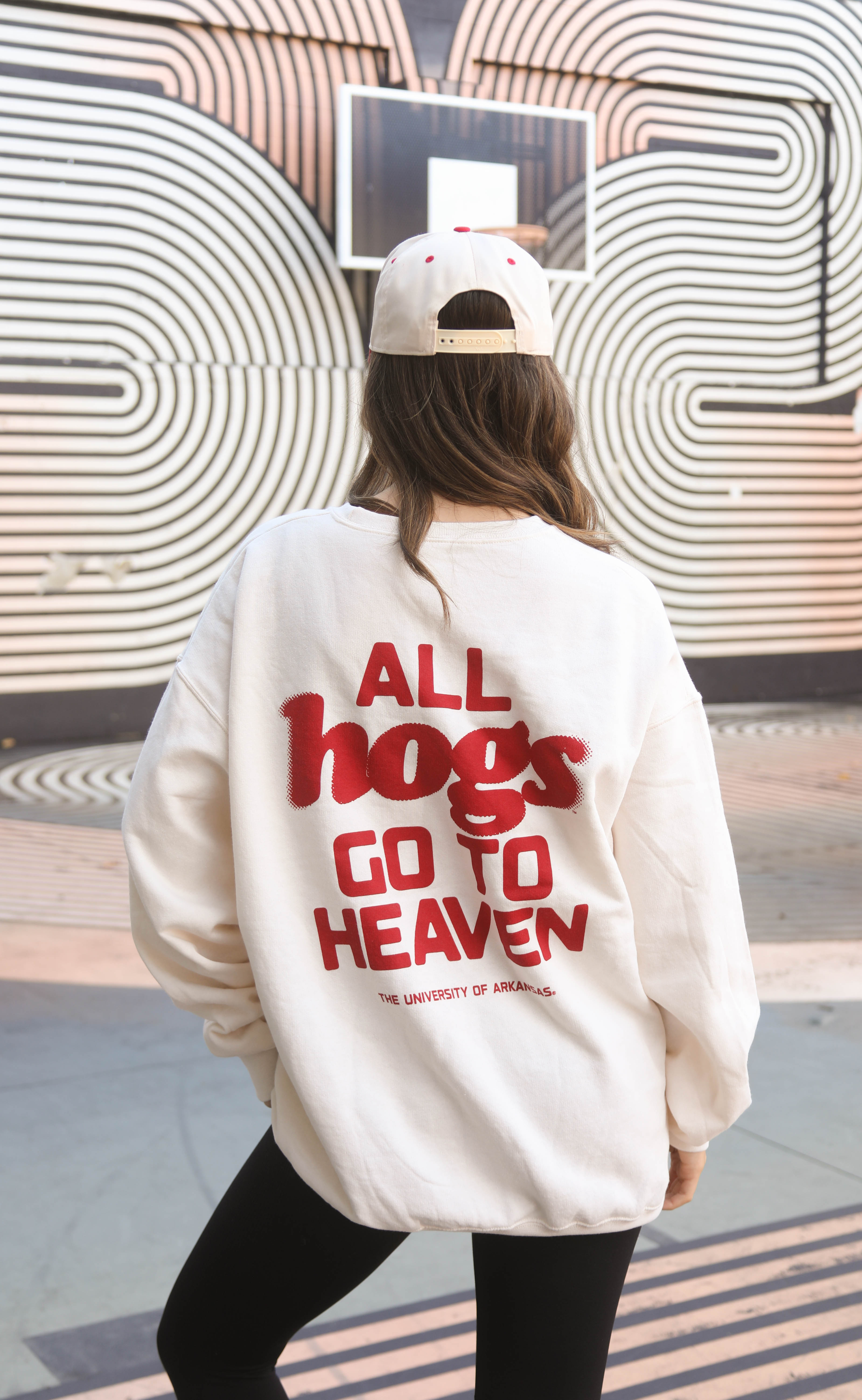 All Hogs go to heaven, right? This cream colored crewneck features a front and back design. We love the fun blurred effect.