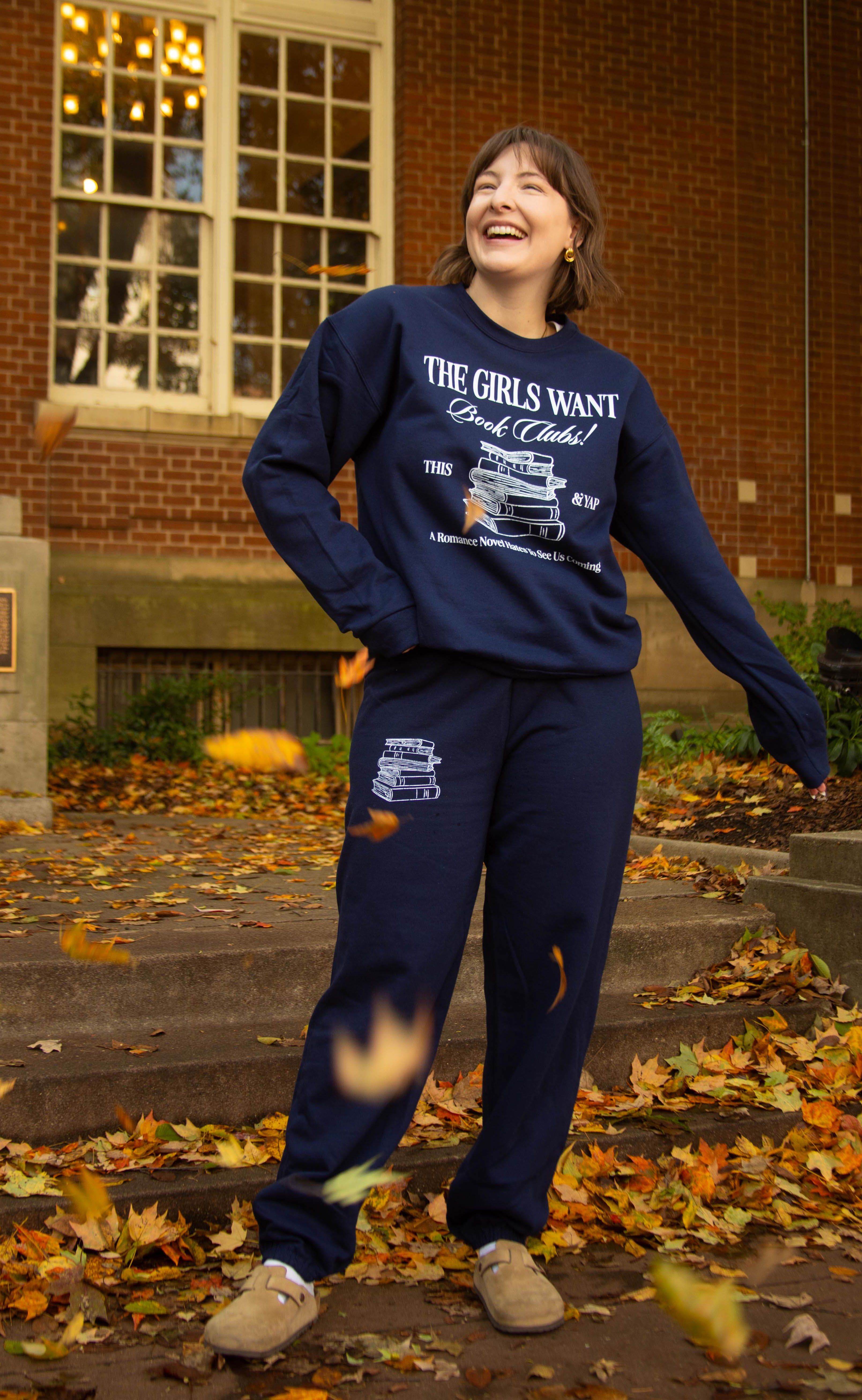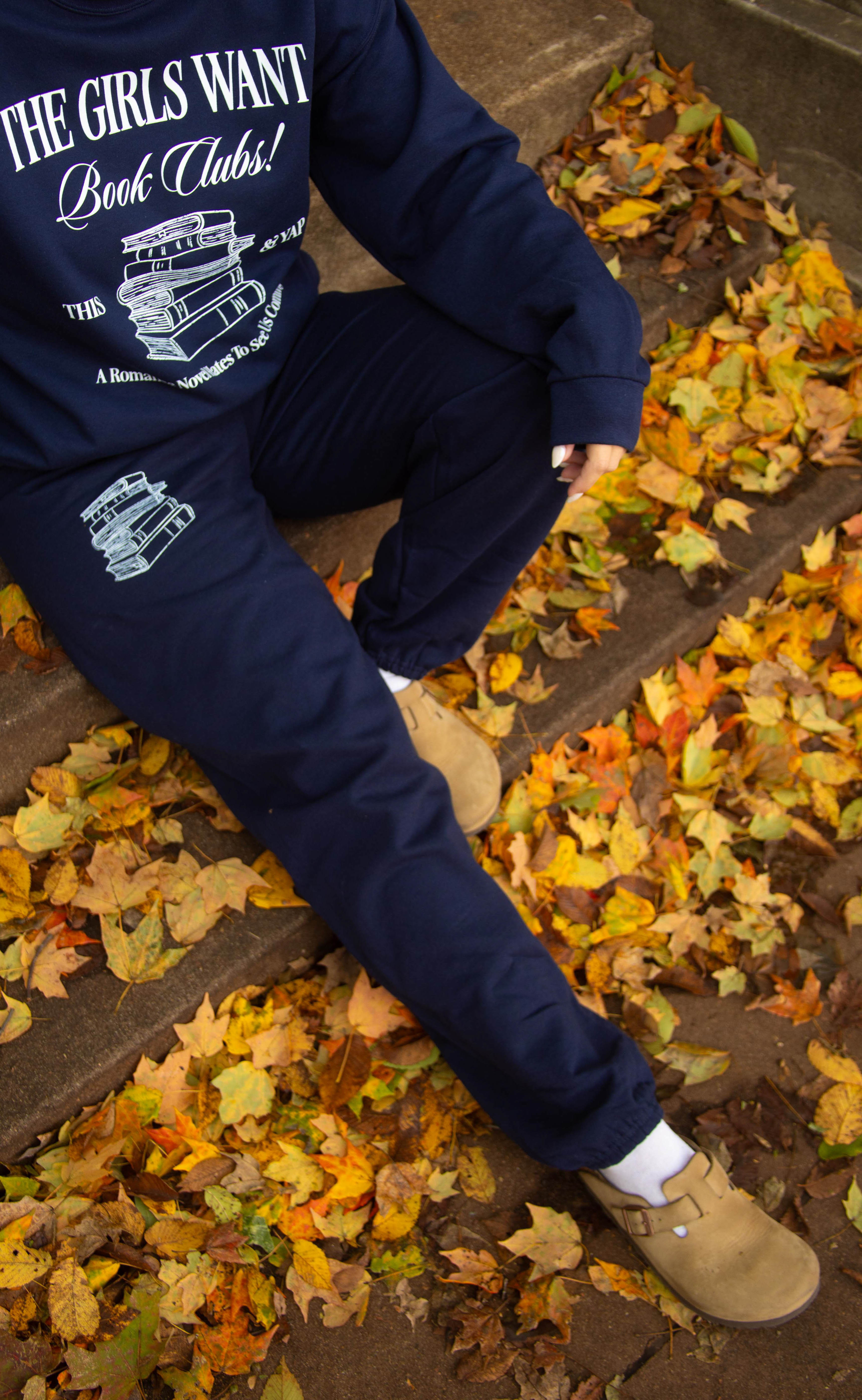 The Girls Want Bookclubs Sweatpants are what cozy dreams are made of. These navy joggers feature a dreamy stack-of-books graphic on the thigh and pair perfectly with the matching sweatshirt for your next reading (or binge-watching) marathon. Soft, slouchy, and effortlessly cute!
