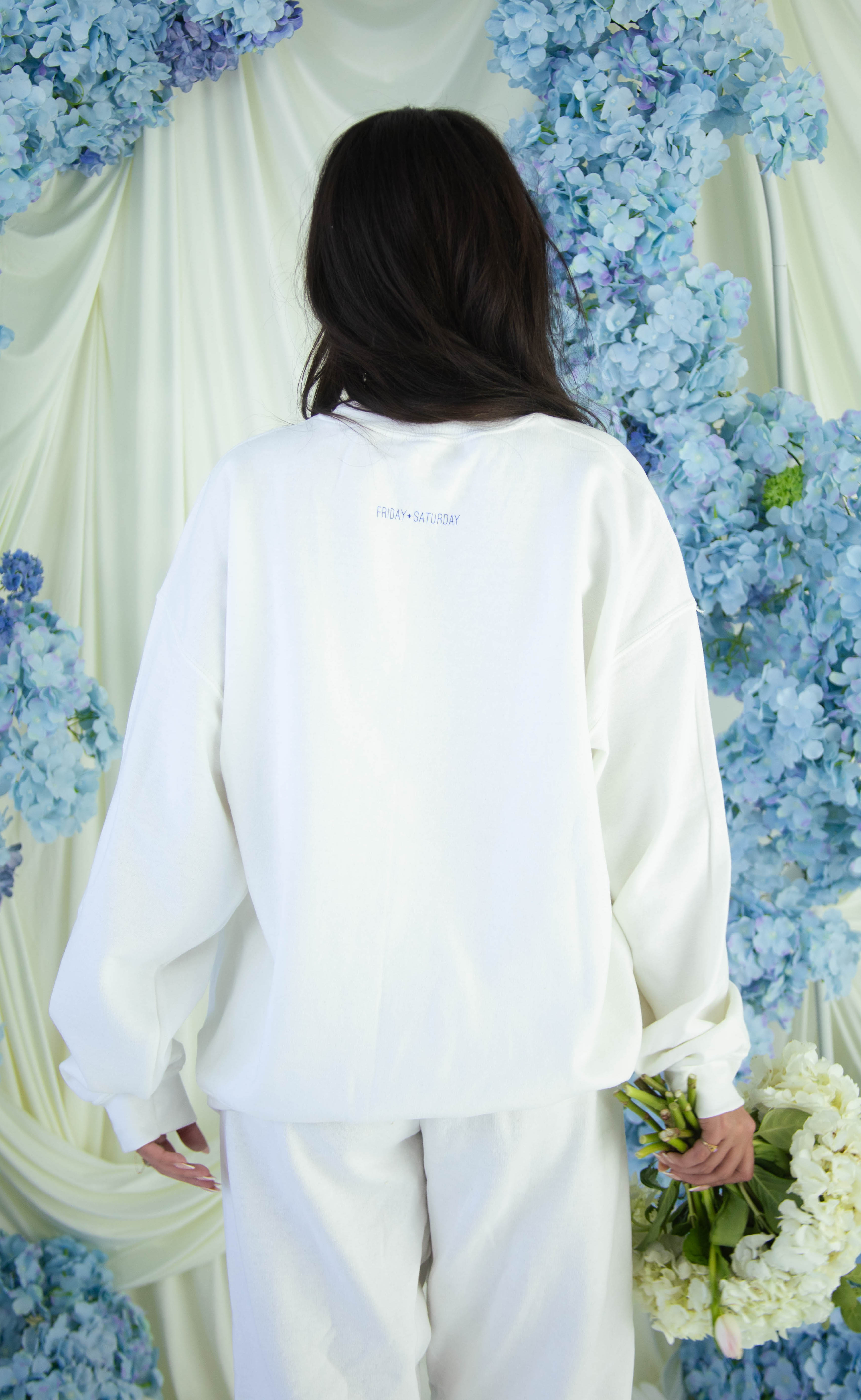 The iconic, original Going to the Chapel Sweatshirt is here to stay! This white crewneck features a blue and pink graphic complete with a pink heart and love bird, and can be paired with the matching sweatpants.