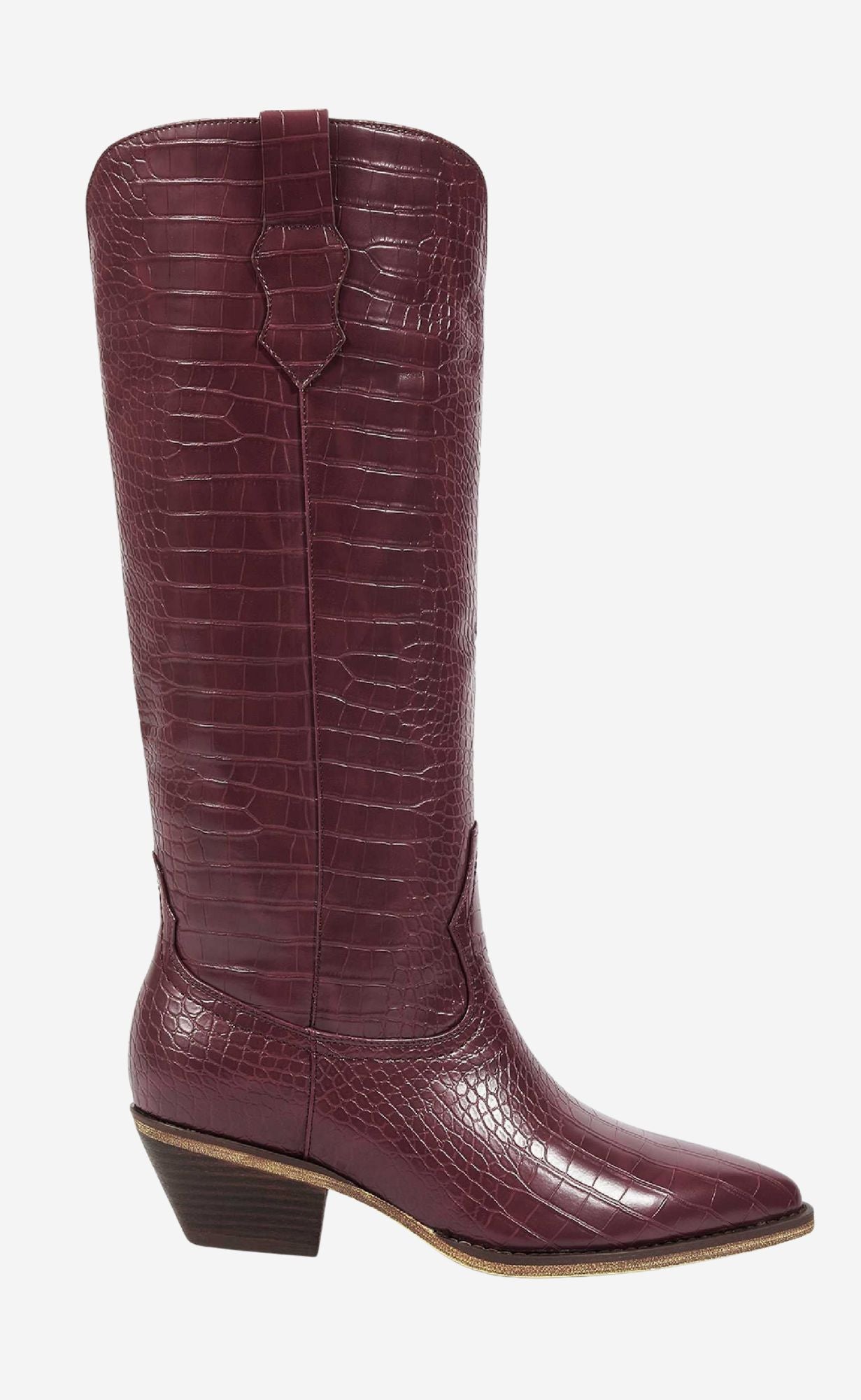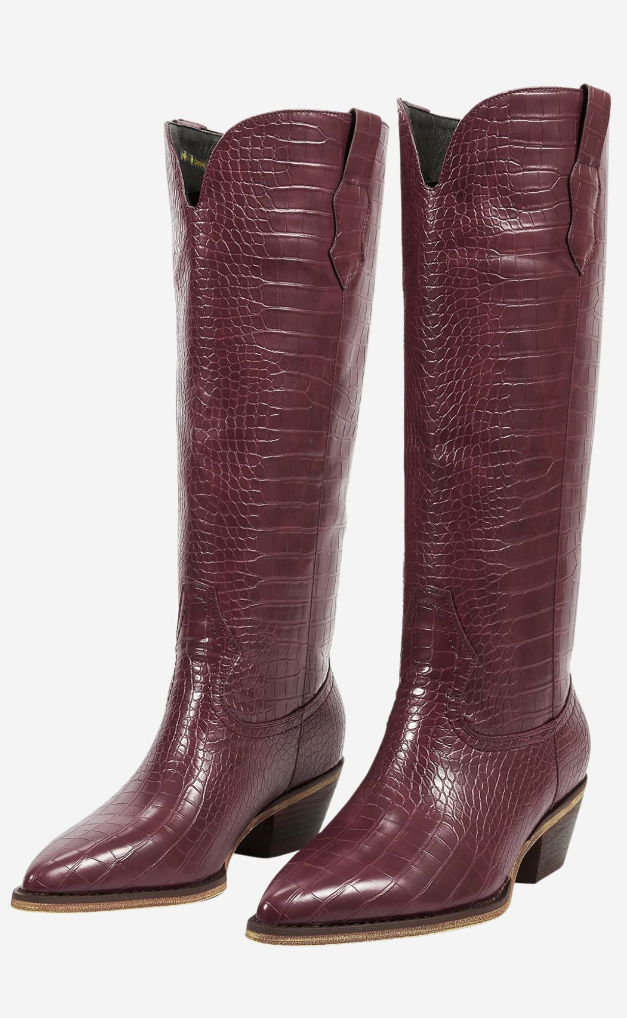 Introducing The LeAnn in Dark Cherry- Elevate your wardrobe with The LeAnn cowgirl boots in Dark Cherry. Carefully crafted with a luxurious embossed crocodile texture, these boots are guaranteed to get you compliments. The vegan leather is durable, yet comfortable enough to wear all day.
