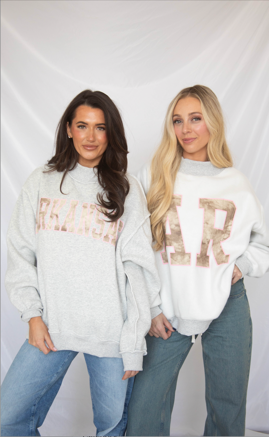 You know you want it! This on-trend mockneck sweatshirt features "Arkansas" on one side and can be reversed to rep an oversized "AR."