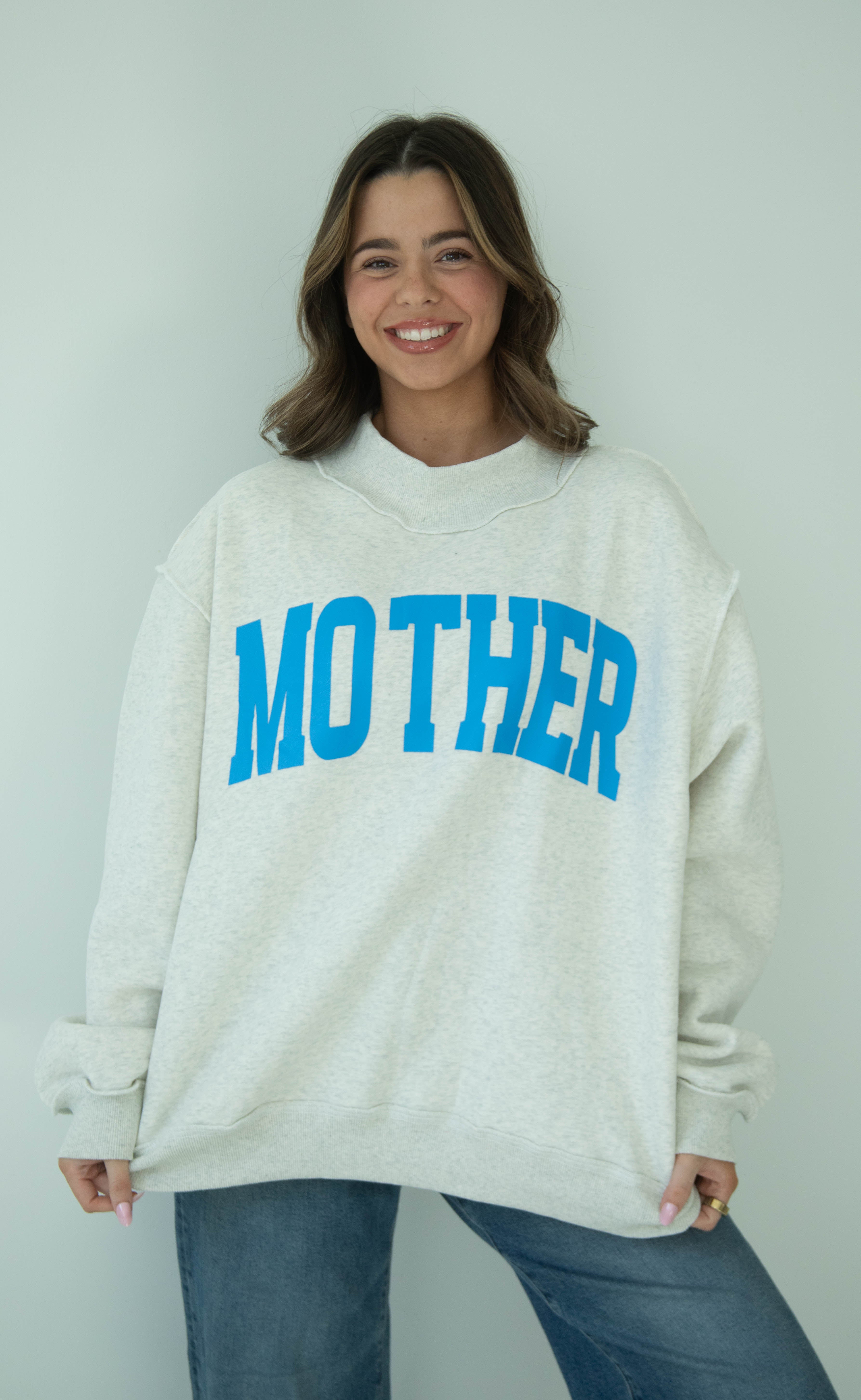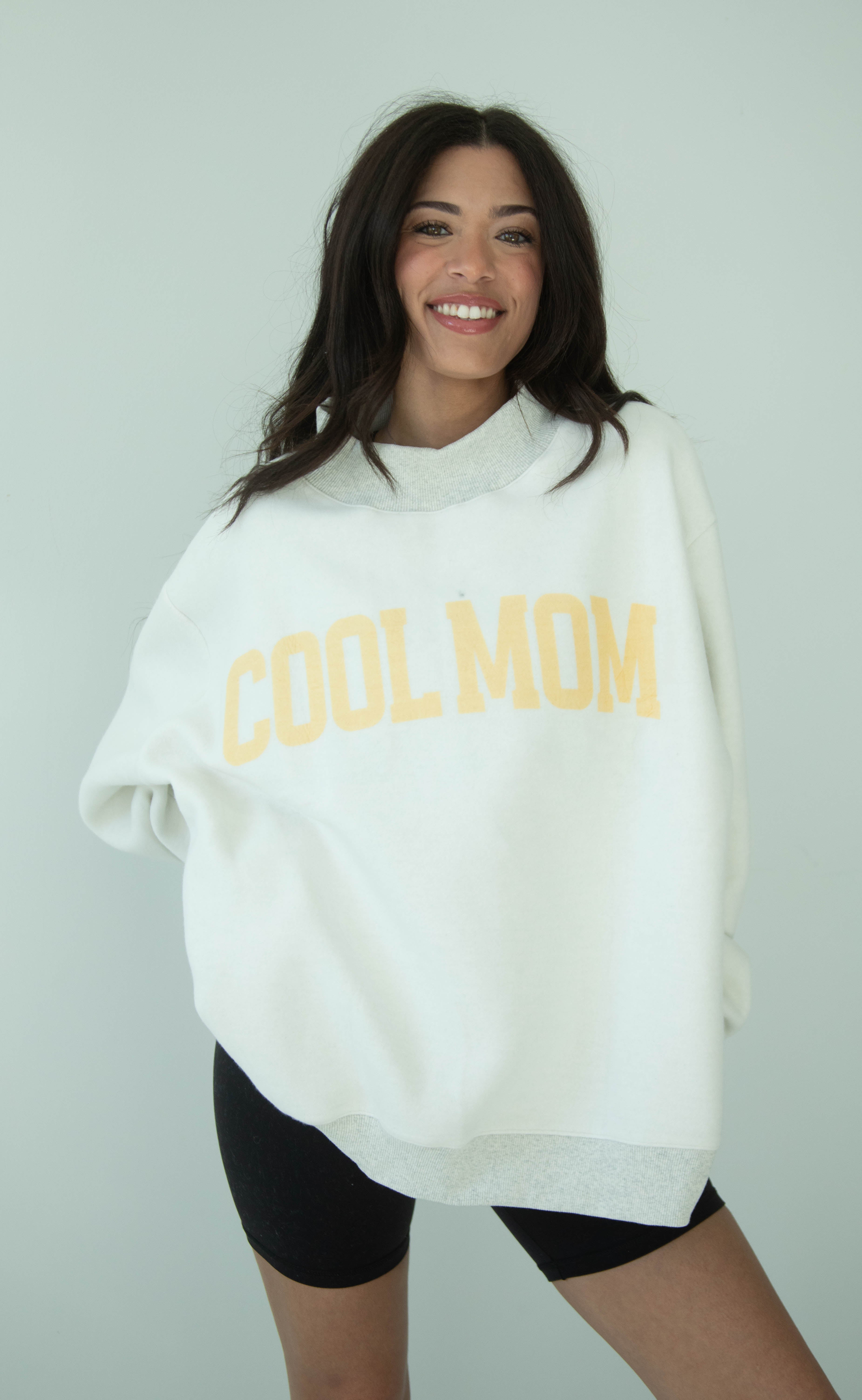 Calling all cool moms! This mock neck is for you! You've got a bright blue MOTHER on one side and an on trend butter yellow COOL MOM on the other!