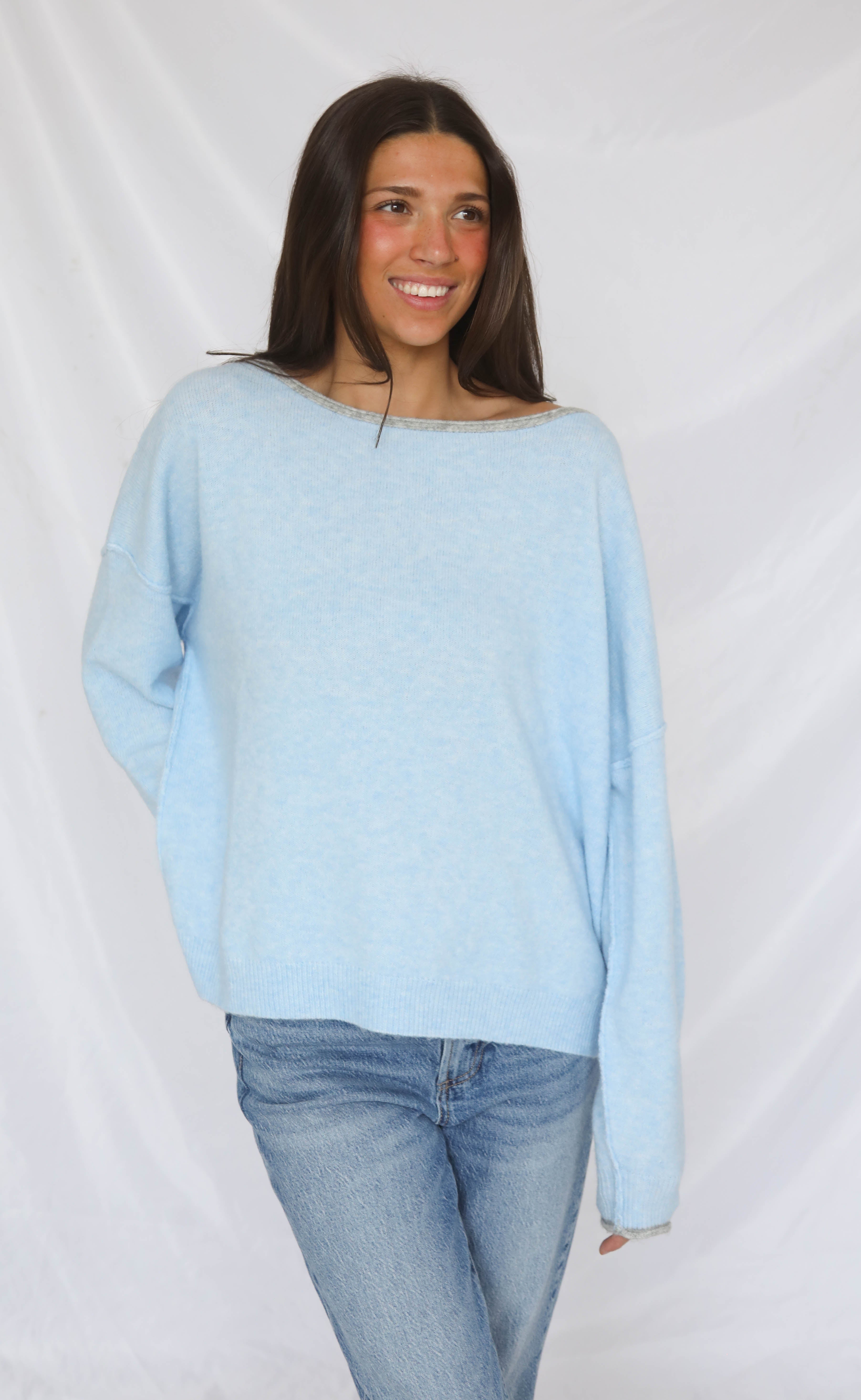 This lightweight, super-soft sweater is all about easygoing style. The boat neckline, relaxed drop shoulders, and boxy oversized fit make it effortlessly chic, while the subtle rolled hems add a polished, casual finish. Perfect for layering or wearing on its own, it’s a cozy staple you’ll reach for again and again.