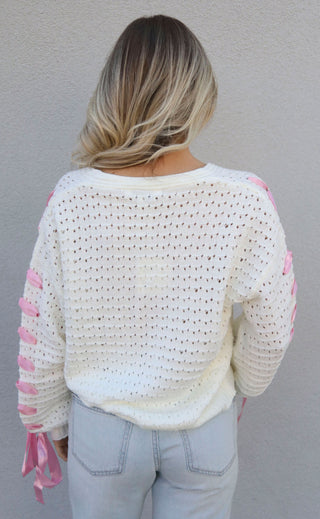 The Chivalrous Acts Sweater is oh so pretty with a v-neckline, button up front and pink ribbon details. This is the perfect top for date night or Valentine's Day.