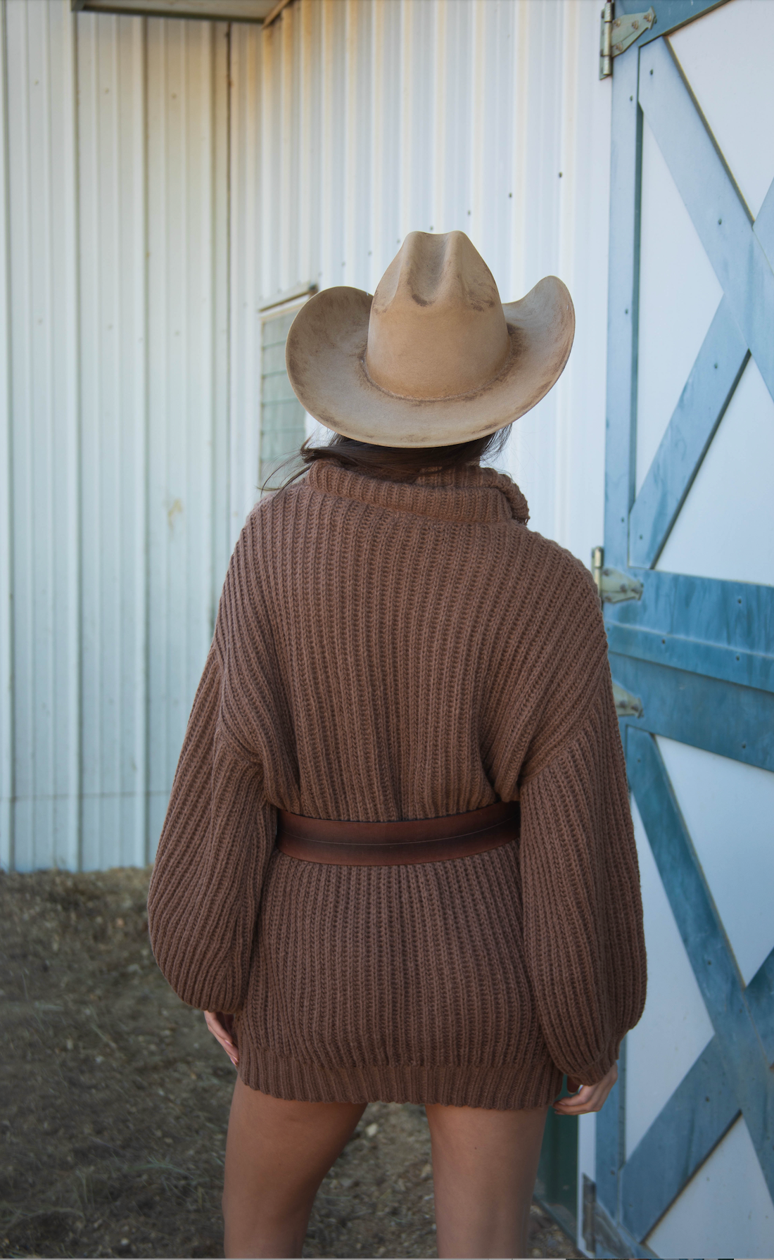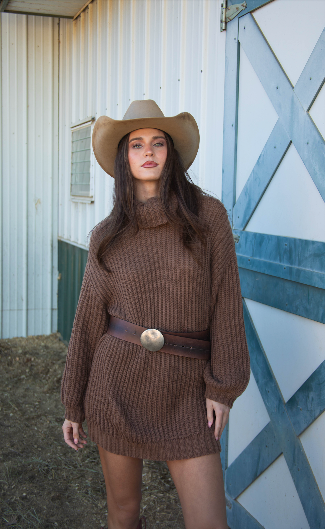 This soft brown knit sweater is all about cozy, effortless style. Featuring an oversized turtleneck, long sleeves, and a relaxed boxy fit, it drapes comfortably for a laid-back, chic silhouette.